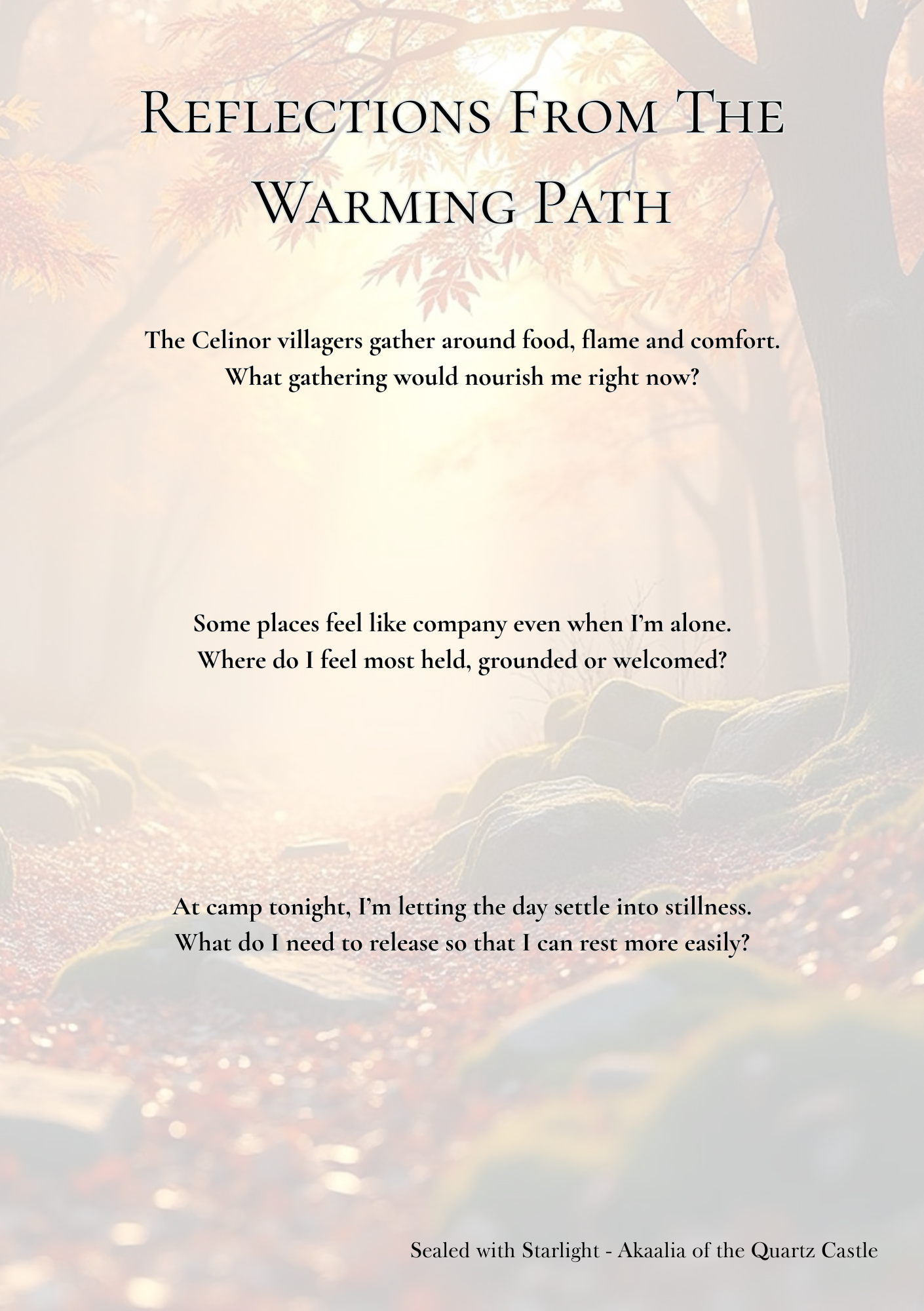 Collect this week’s mist-touched pieces and moss grown fragments from the overgrown depths of Celinor Sticker Set The Warming Path Art Print Journal Prompts